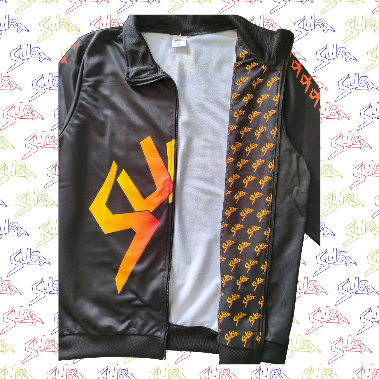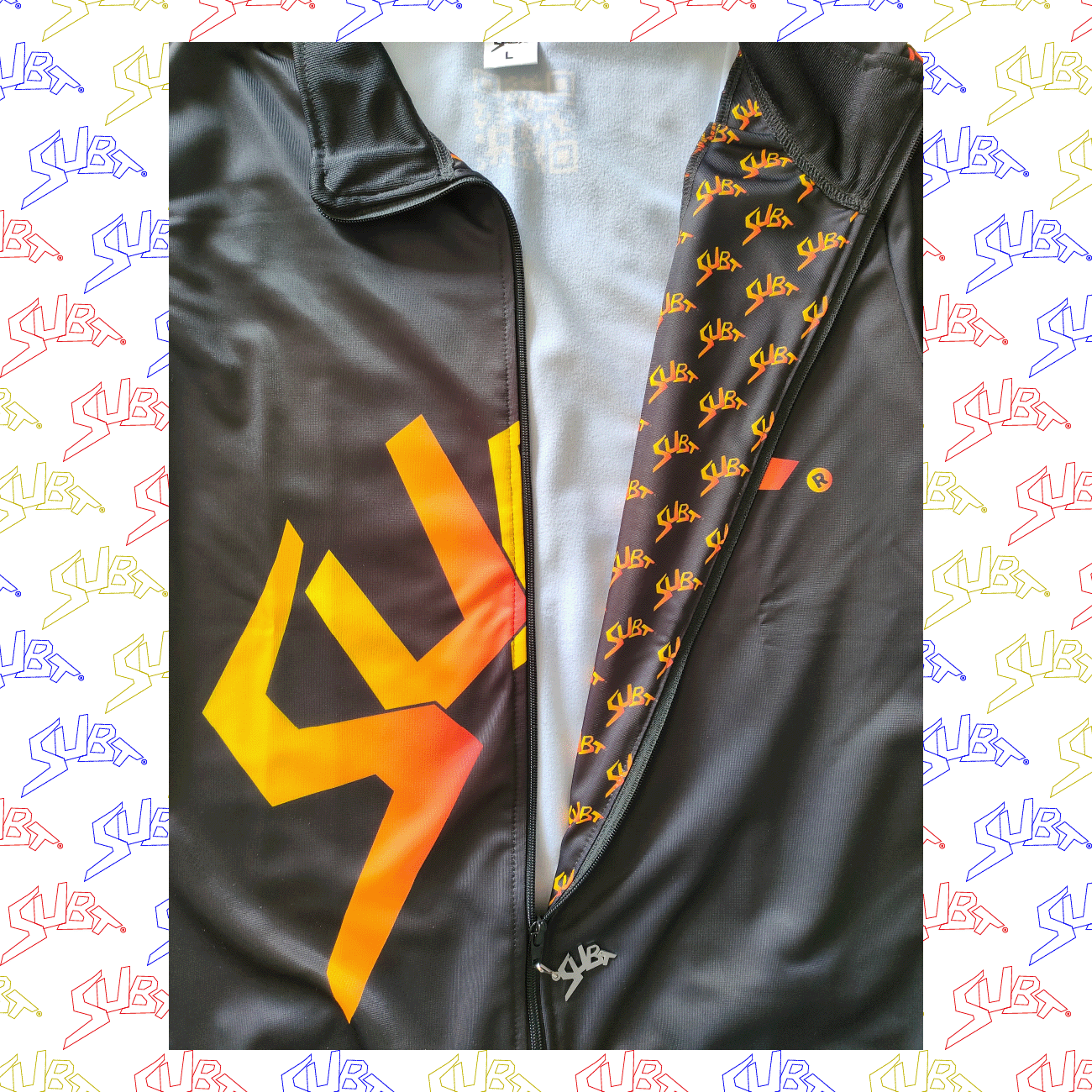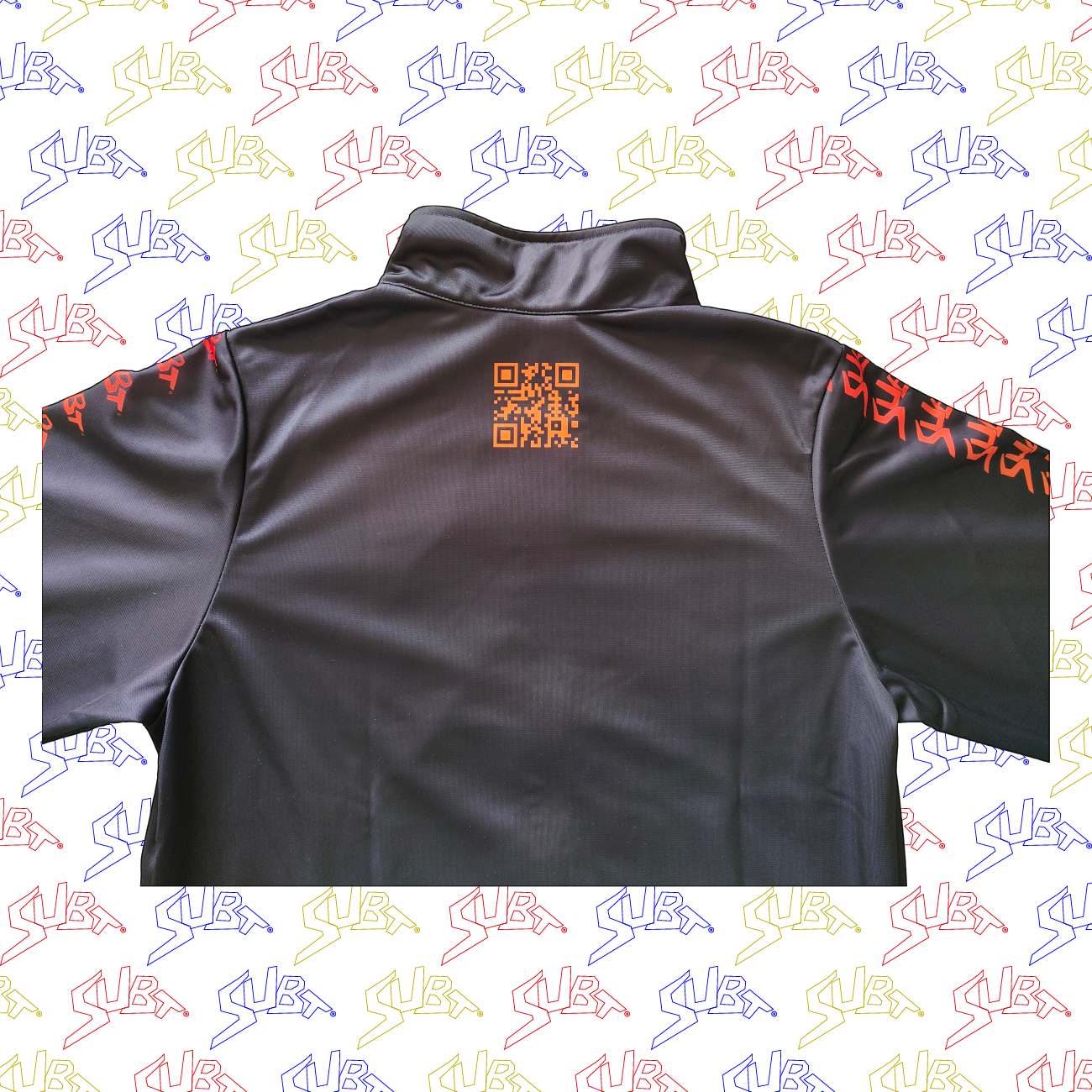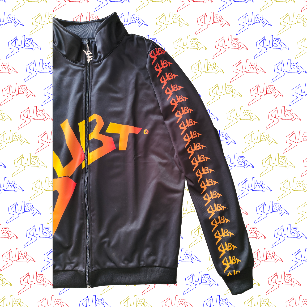 Maglia tuta nera con logo SUBT sfumato ispirato all’alba solare